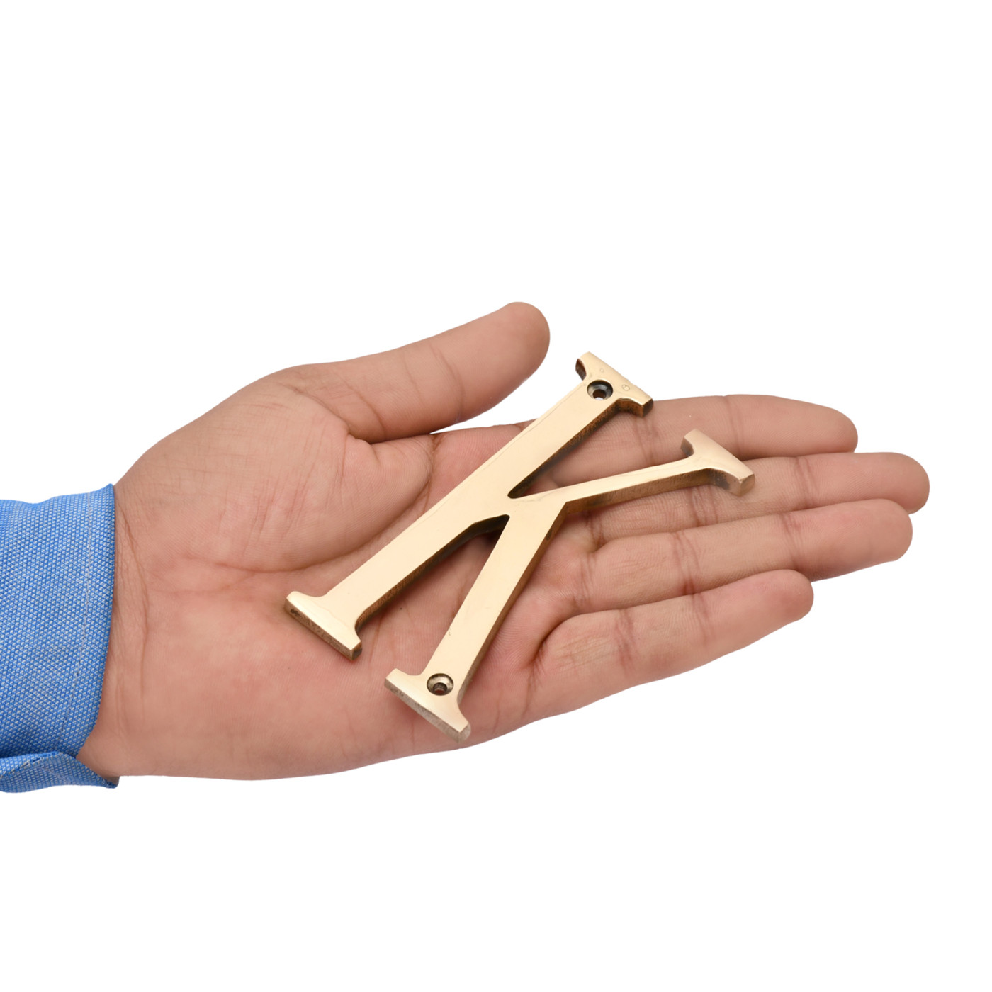 • Product Details: 1 Alphabet (K) | 2 Installation Screws | Height- 4 inches | Material: Brass.