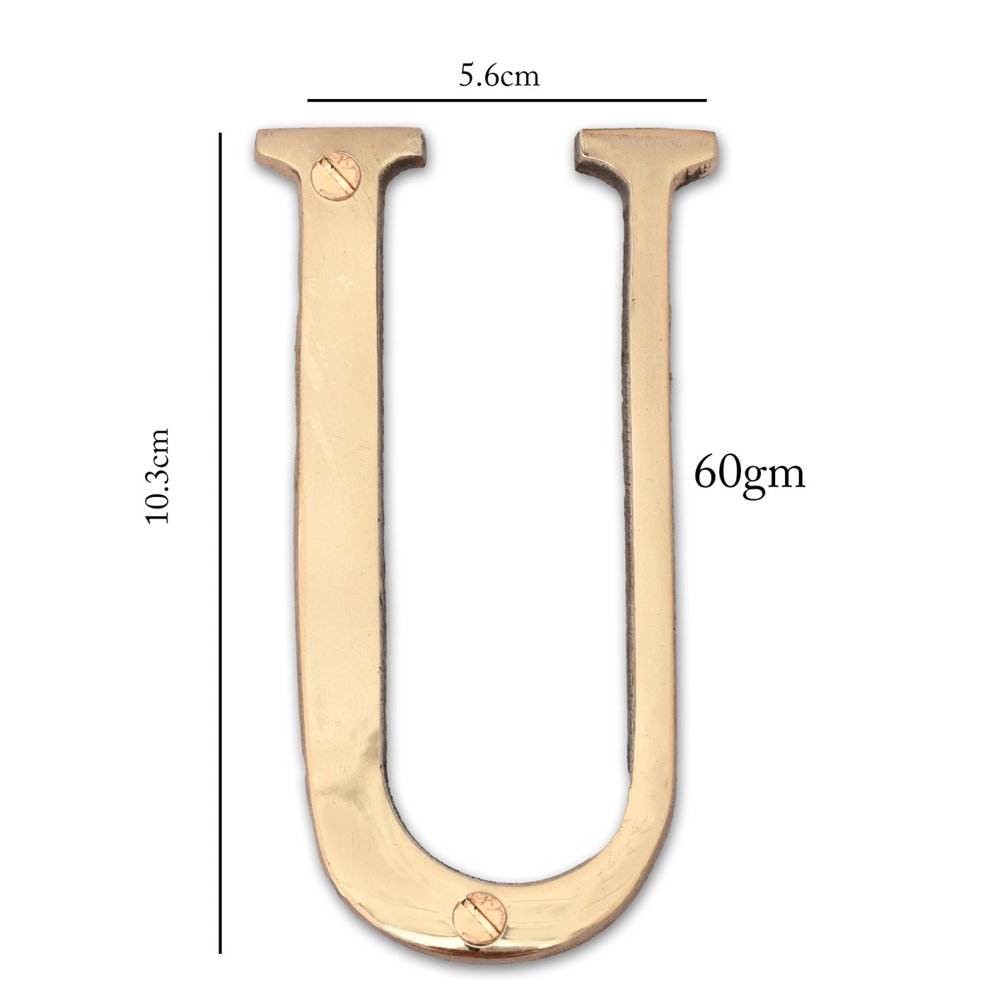 • Product Details: 1 Alphabet (U) | 2 Installation Screws | Height- 4 inches | Material: Brass.