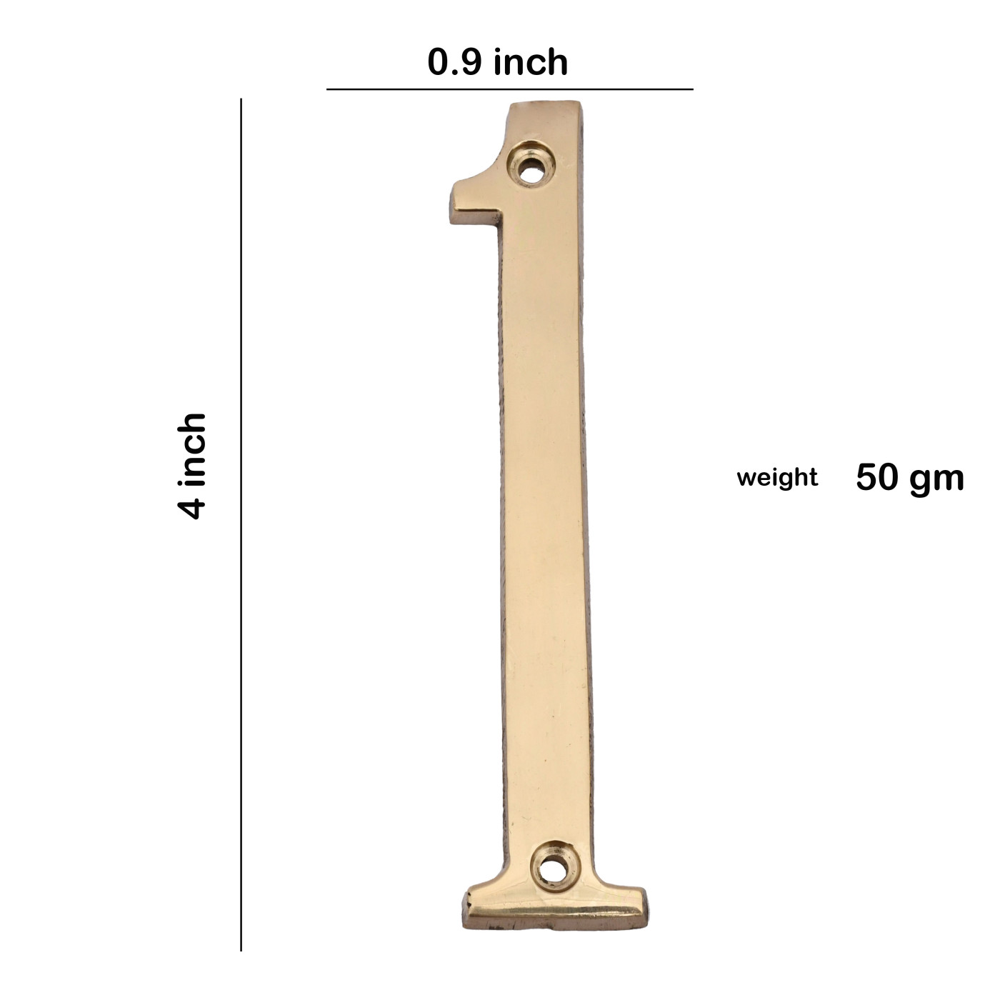 - Product Details: 1 Numeral [Digit 1], 2 Installation Screws, Size: 4 x 09 inches, Weight: 50 Gram, Material: Brass.