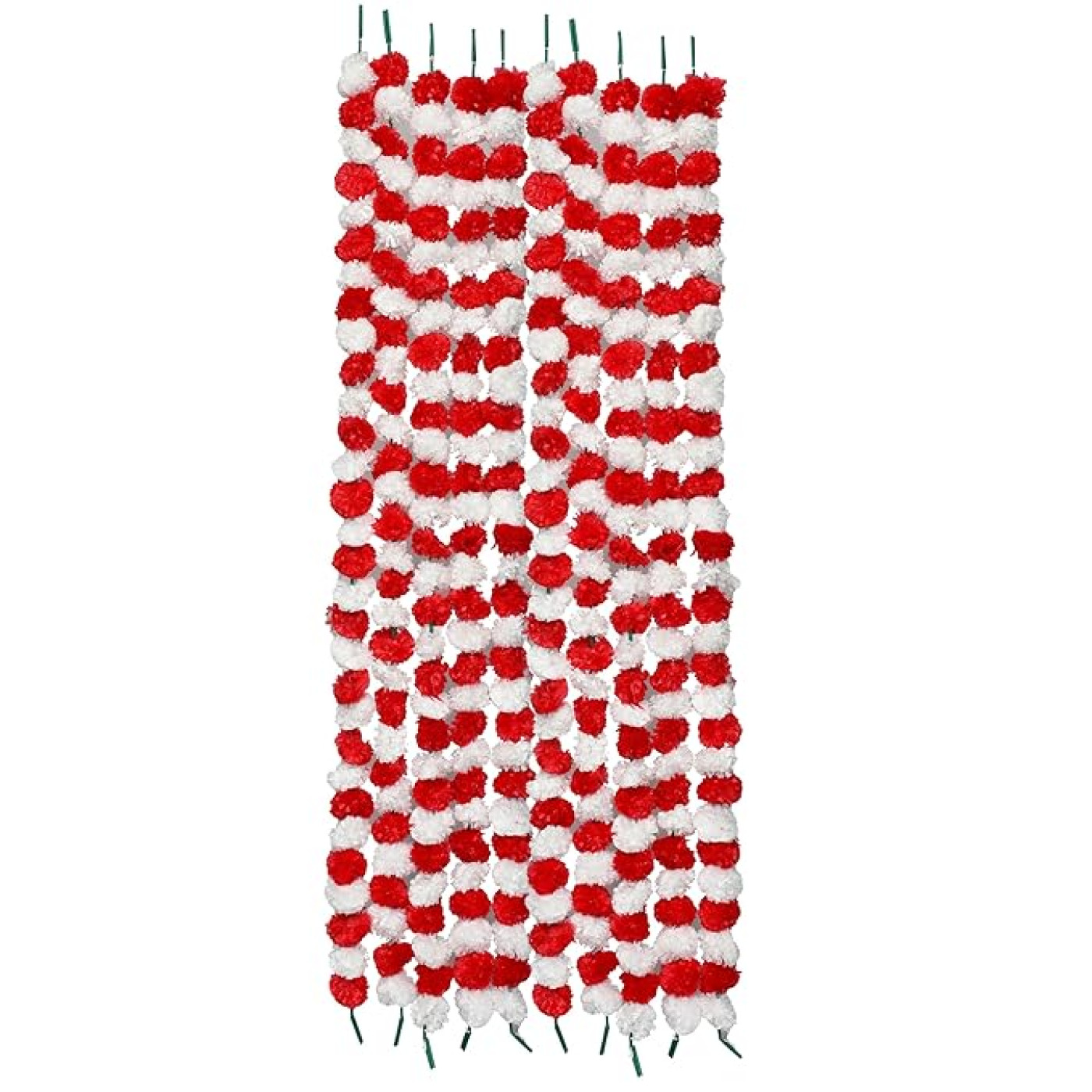 AargKraft™ Artificial Marigold Flower Garlands for Home Decor - Pack of 10 Strings Colour - Red & White - 4.5 Feet Length Approx