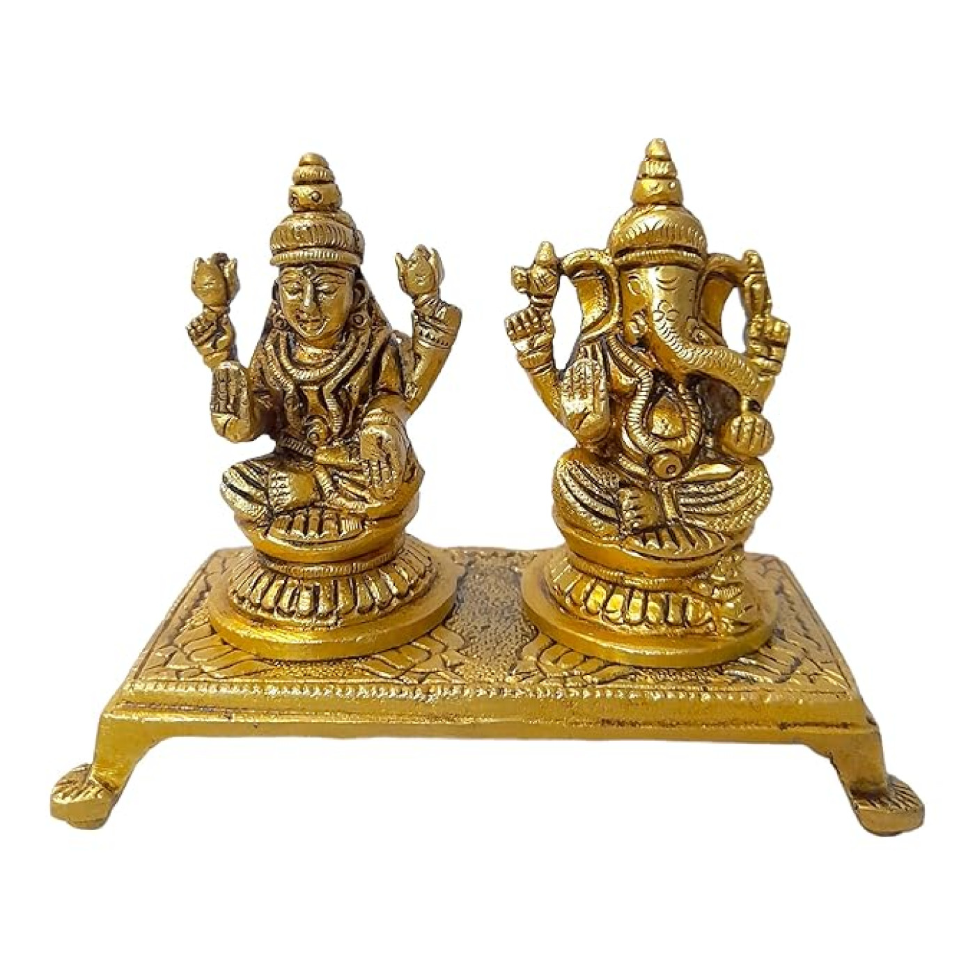 AargKraft Brass Laxmi Ganesh Ji Idol with Chowki Showpiece Ideal for Home Office Pooja Decor | Lakshmi Ganesha Idol Statue | Ganesha Lakshmi Religious Figurine Hindu God Sculpture Murti