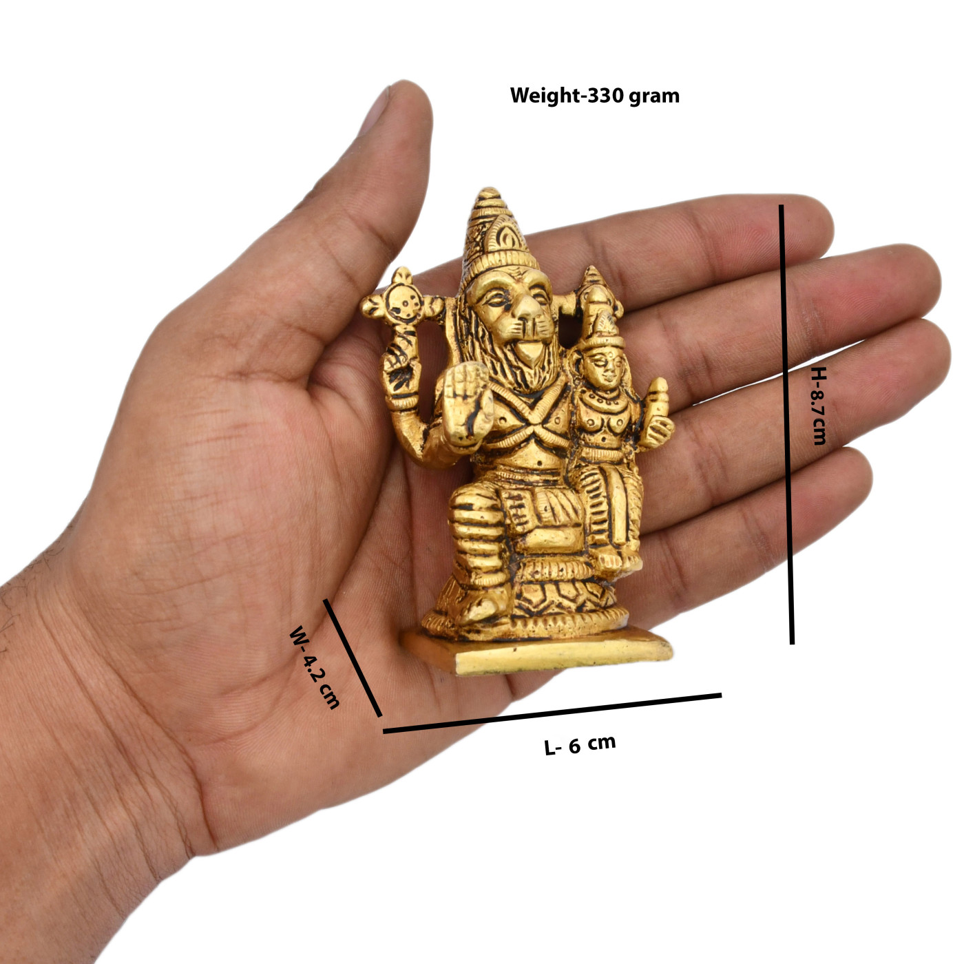 AargKraft™ Brass Narsimha Narsingha Narsing with Lakshmi Laxmi Murti Idol Statue Sculpture | Pooja Praying Idol | Golden Height - 4" Inch