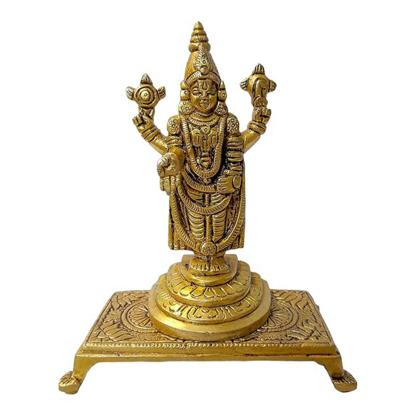• Material: Brass | Colour: Golden | Style: Modern | Theme: Religious | Package Contents: 1 Metal Tirupati Balaji Bhagwan idol statue | Care Instruction: Clean With Dry Cloth