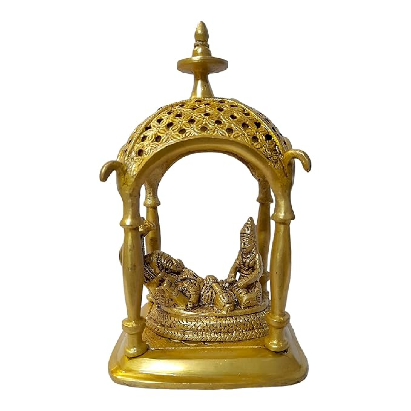 - Material: Brass | Colour: Golden | Style: Modern | Theme: Religious | Package Contents: 1 Metal Vishnu Lakshmi Idol with Sheshnaag statue | Care Instruction: Clean With Dry Cloth