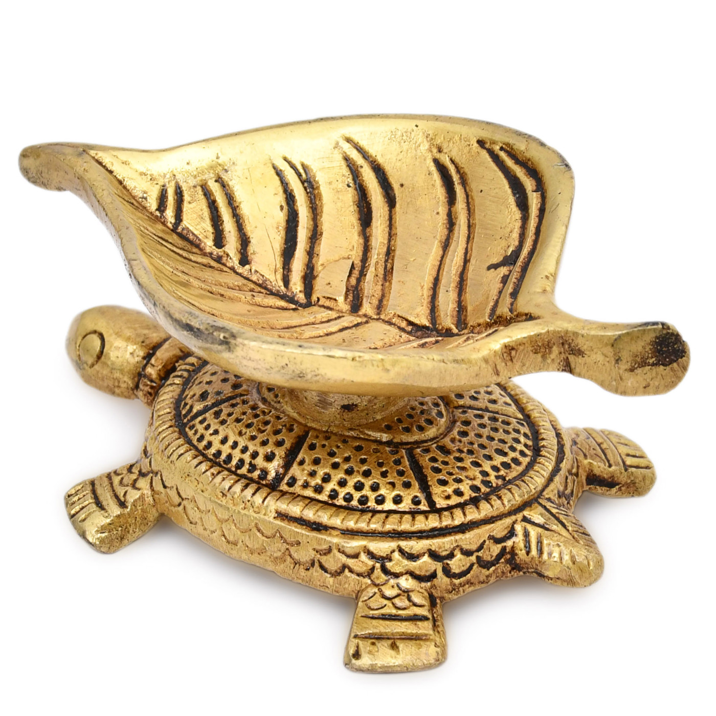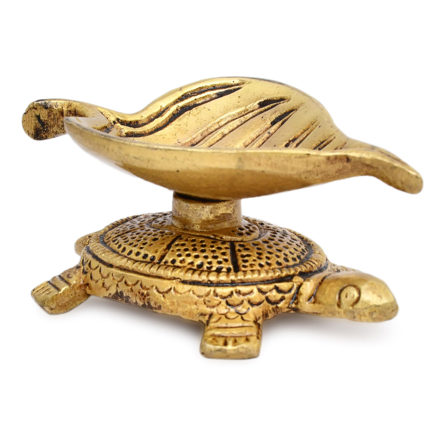 - Handcrafted brass turtle with diya for home decor and festive occasions
