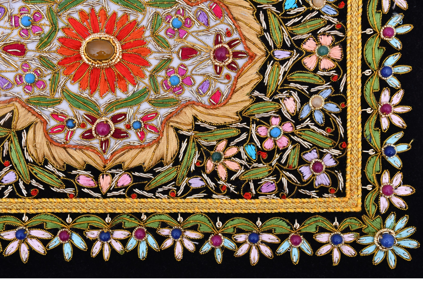 AargKraft™ Royal Ancient Zardozi Jewel Art Wall Hanging, Hand Embroided - Black Velvet, Zardosi Wall hanging 9 x 12 inchs