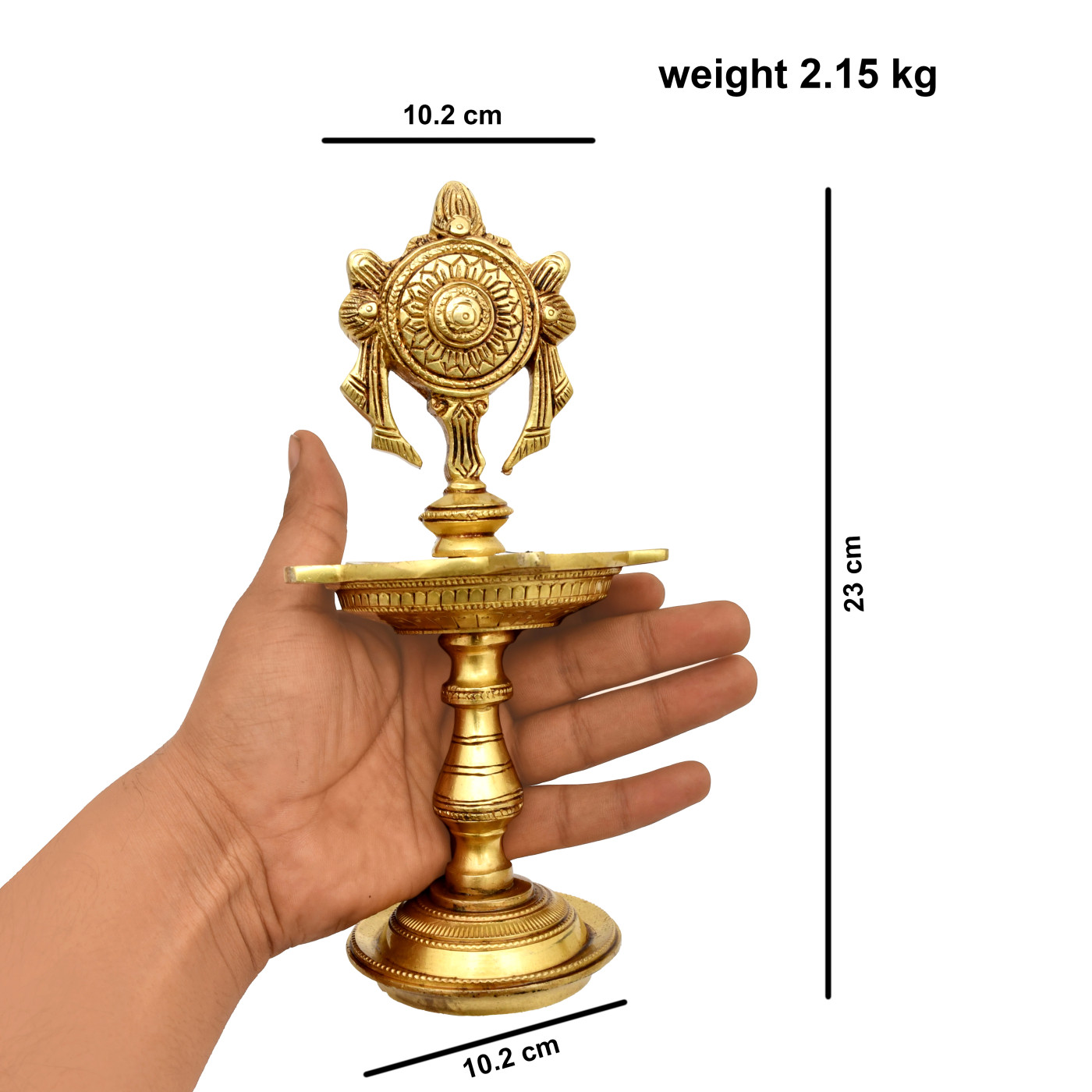 Brass Shankh Chakra Namah Design Oil Lamp Height- 9 inches, Weight- 2.1 kg approx