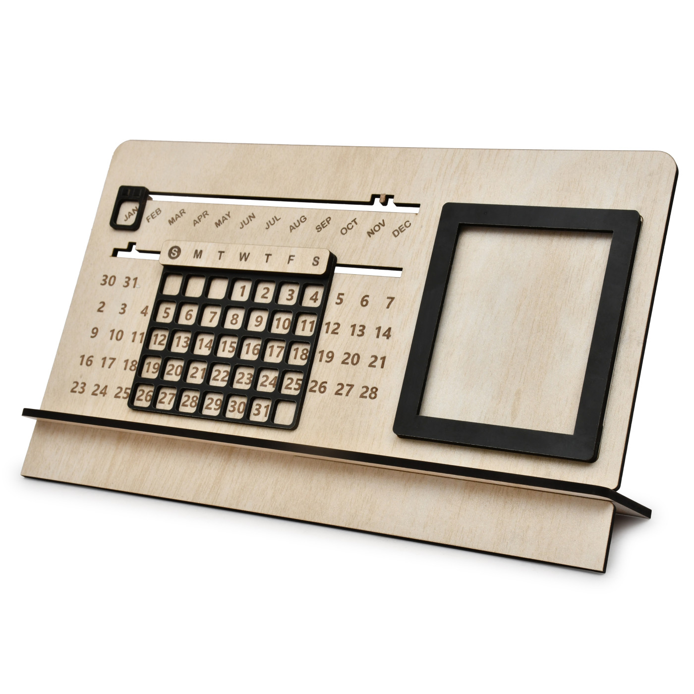 AargKraft Sliding Perpetual Calendar - Durable MDF Wood, Modern Design, Easy-to-Use Date Tracker, 7-inch Height