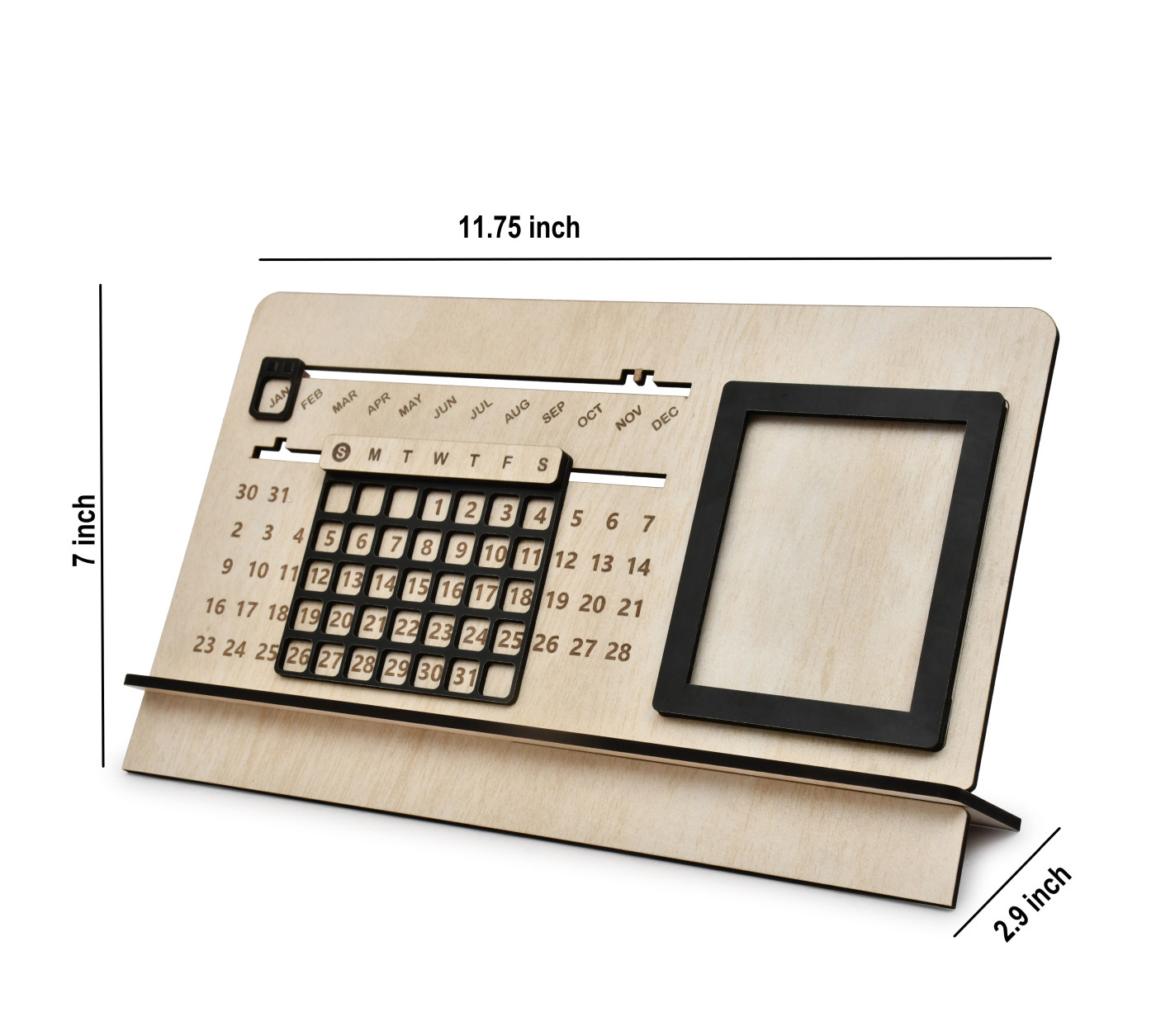 - Compact and Practical Dimensions: Measuring 11.75 x 2.9 x 7 (LxBxH) inches approx , it fits seamlessly on desks, shelves, or countertops. Crafted from MDF wood, this calendar is durable, lightweight, and designed to last.