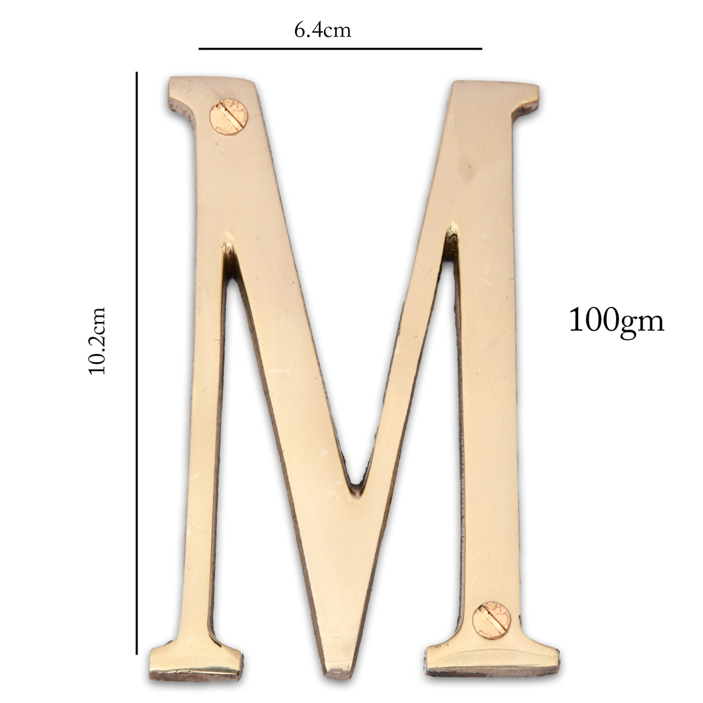 - Product Details: 1 Alphabet (M) | 2 Installation Screws | Height- 4 inches | Material: Brass.