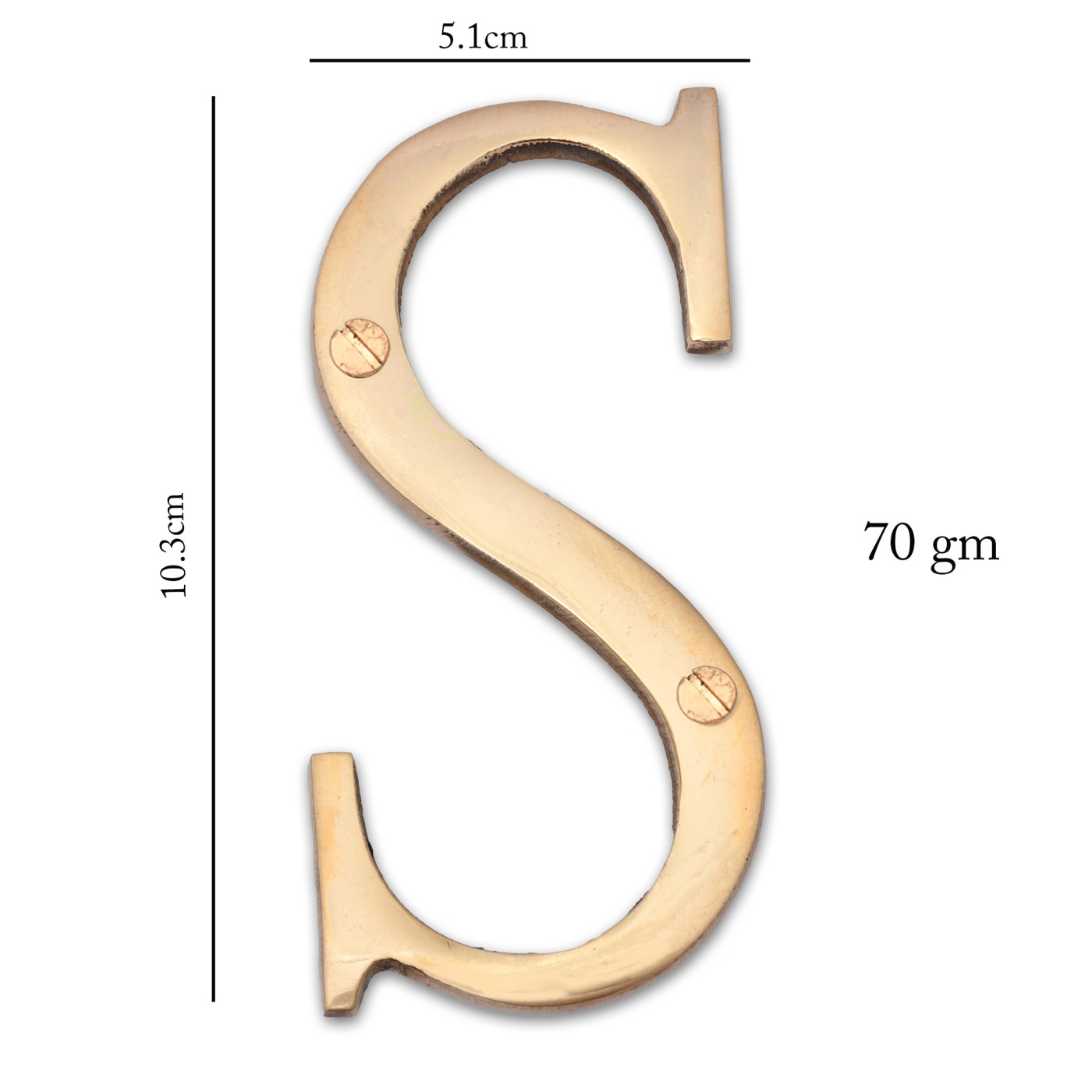 - Product Details: 1 Alphabet (S) | 2 Installation Screws | Height- 4 inches | Material: Brass.