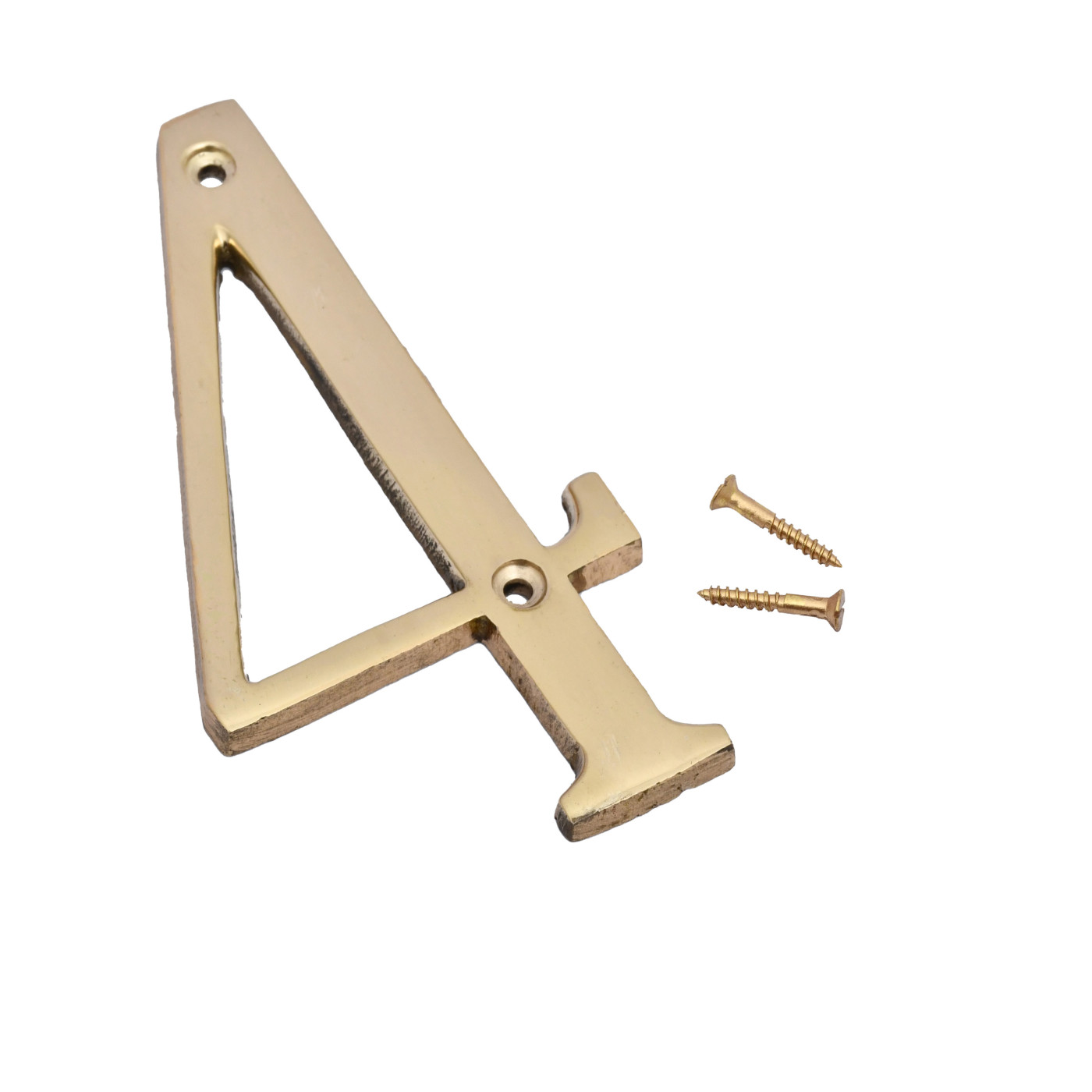 • Product Details: 1 Numeral [Digit 4], 2 Installation Screws, Size: 4 x 2 inches, Weight: 60 Gram, Material: Brass.