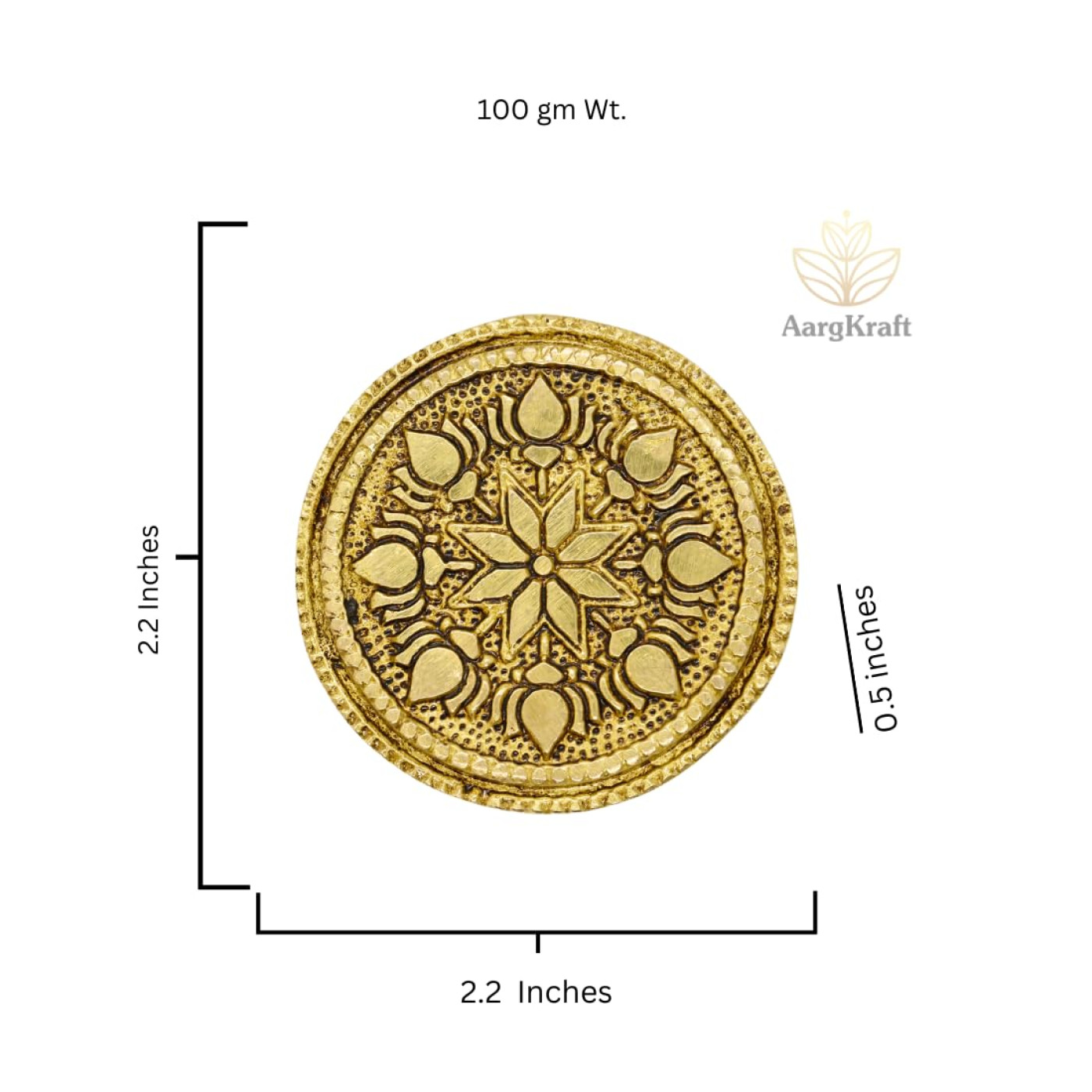 - Dimension: (L x W x H)- 2.20 x 2.20 x 0.5 Inches, Material: Brass, Weight: 100 Grams approx.