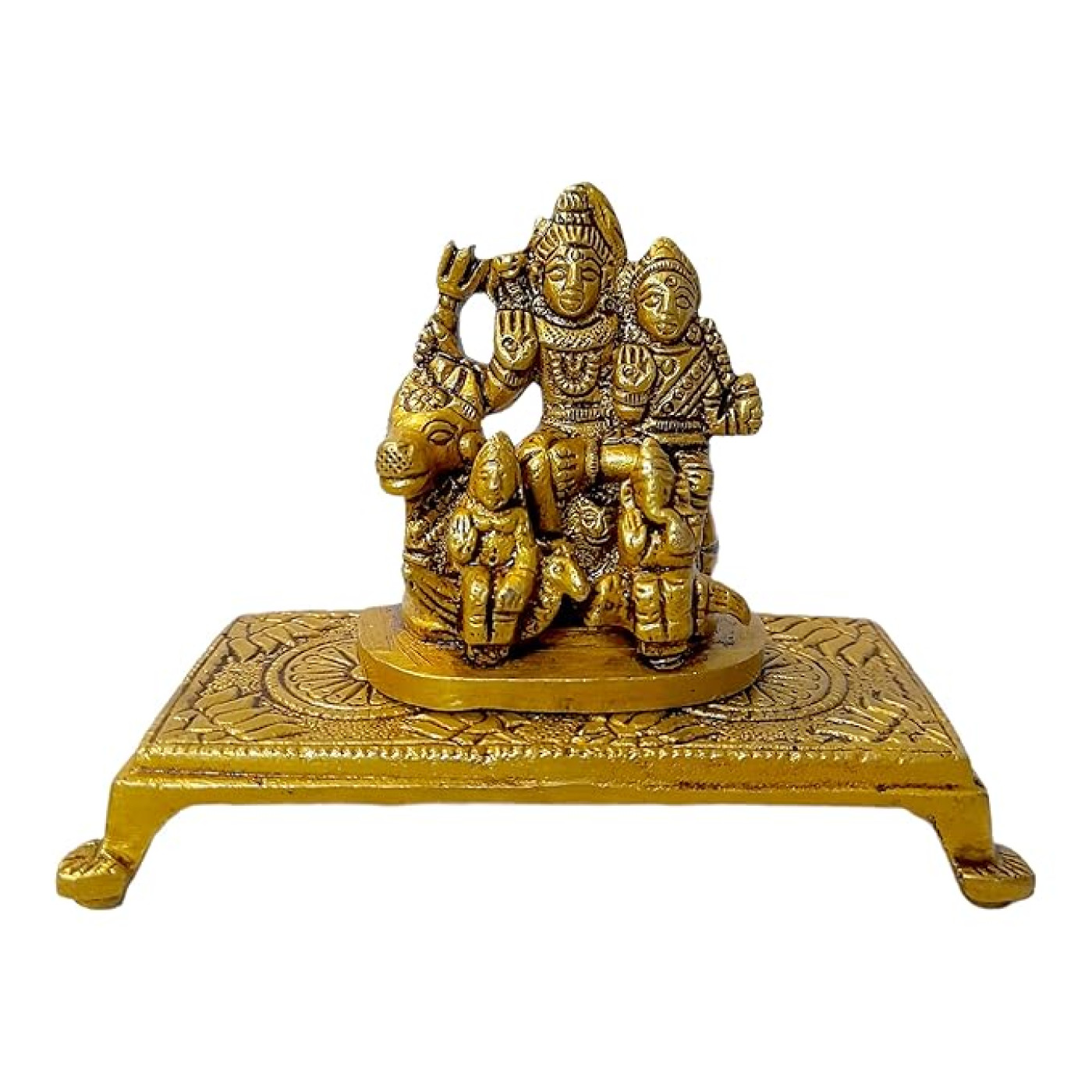 - Material: Brass | Colour: Golden | Style: Modern | Theme: Religious | Package Contents: 1 Metal Shiv Parvati Family statue | Care Instruction: Clean With Dry Cloth