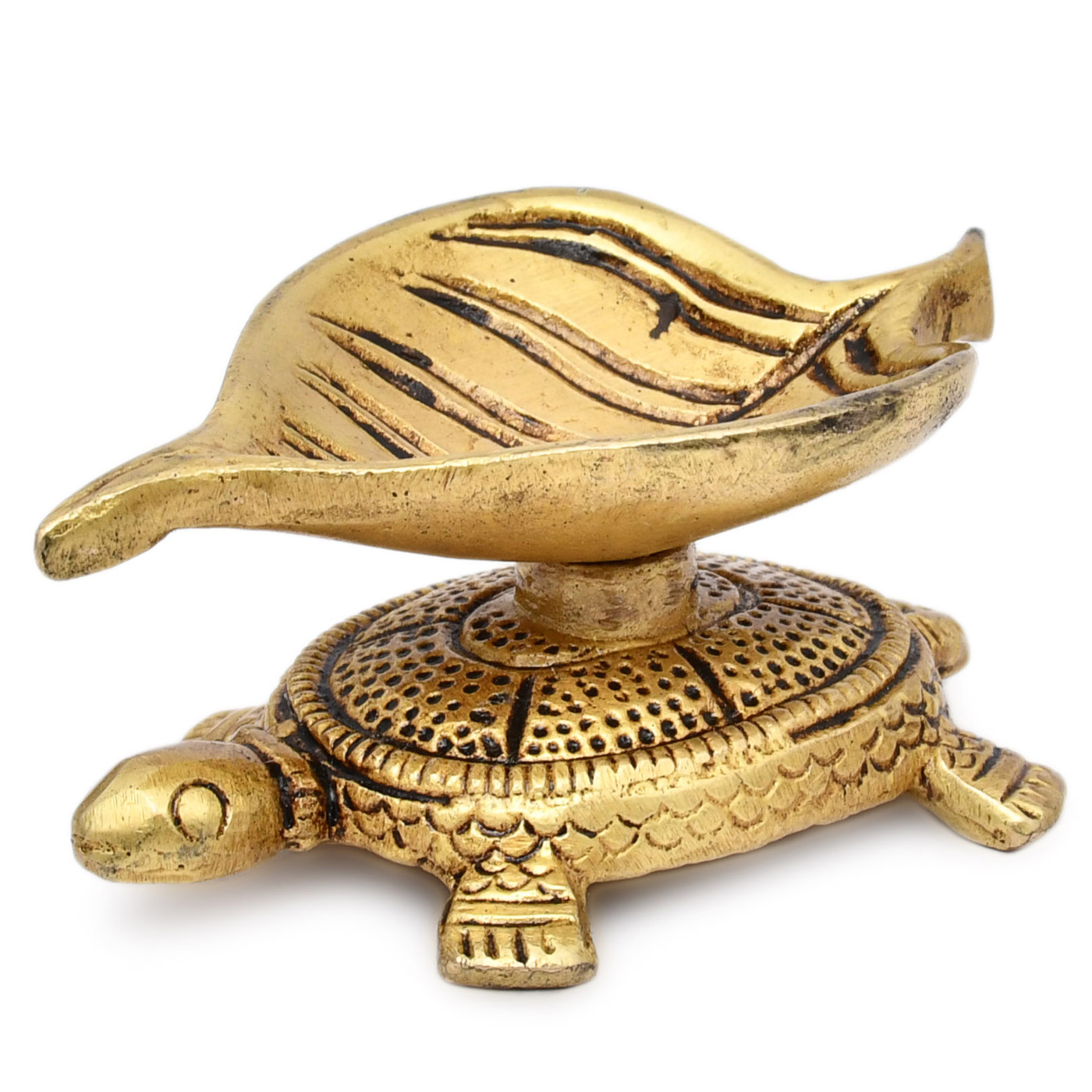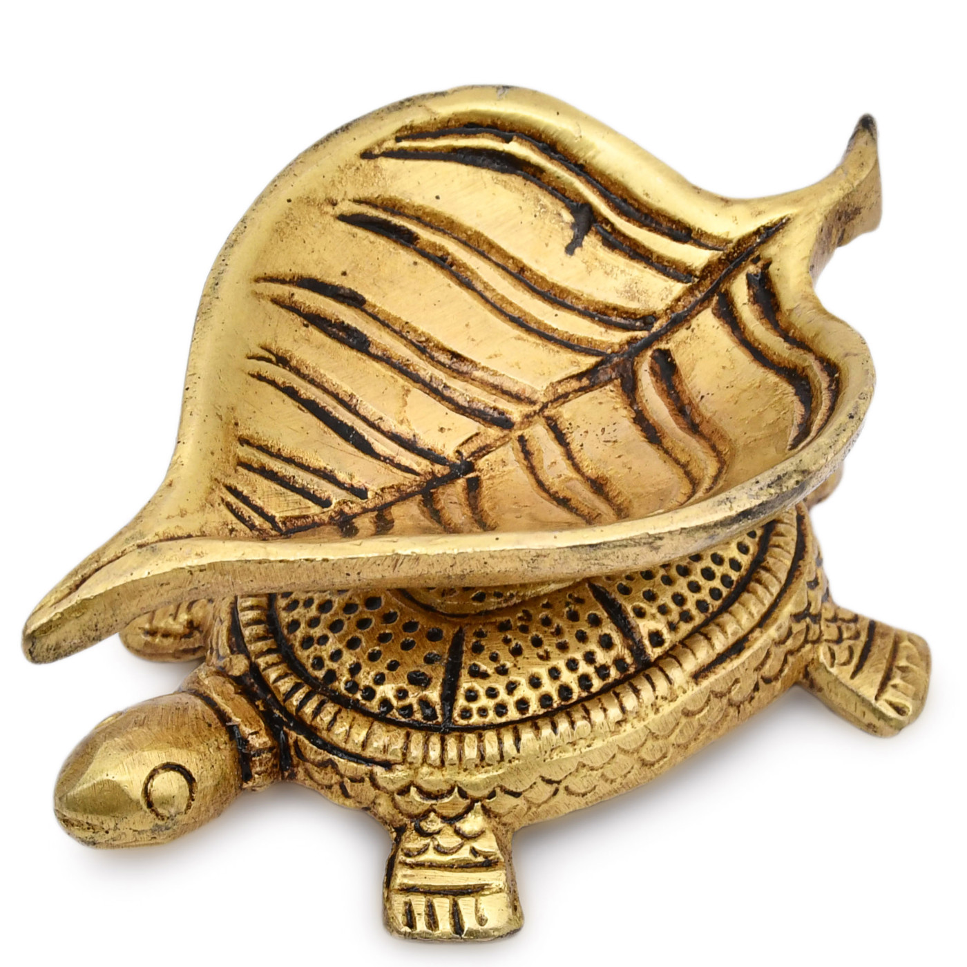 - Handcrafted brass turtle with diya for home decor and festive occasions