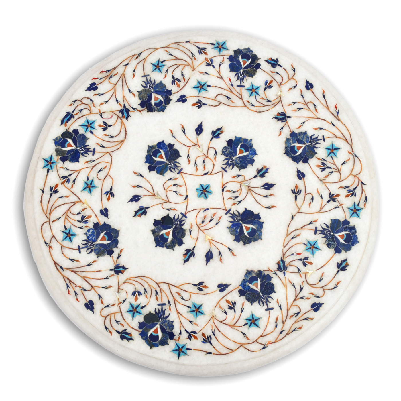 - AARGKRAFT 15" Diameter Handcrafted Marble Stone made Coffee, Corner Table with Pietre Dura Artwork,Inlay work. Made from one Stone.