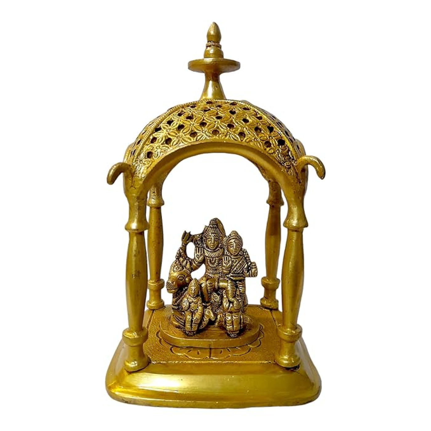 - Material: Brass | Colour: Golden | Style: Modern | Theme: Religious | Package Contents: 1 Metal Shiv Parvti family idol with Nandi statue | Care Instruction: Clean With Dry Cloth