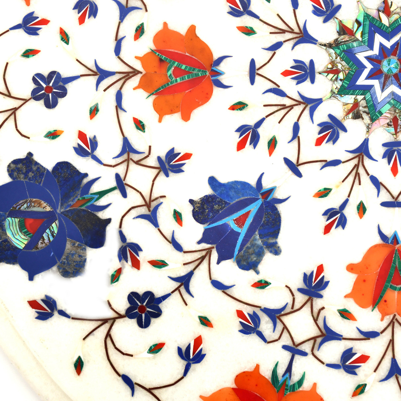 AargKraft Handmade White Orange Marble Table Top with Intricate Inlay Work Marble Coffee/Corner Table Top with Pietre Dura Artwork/Inlay Work, 15-Inch Round