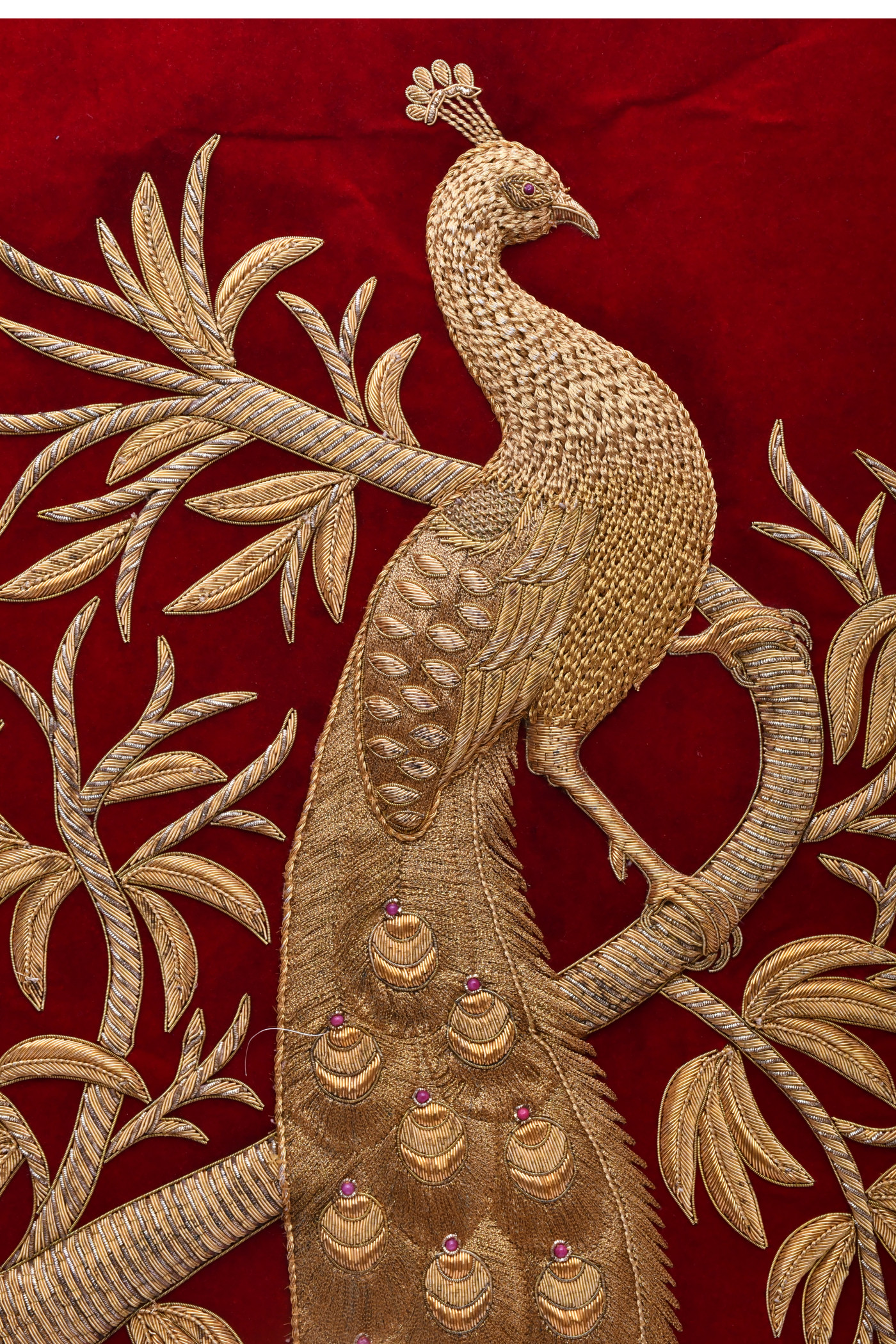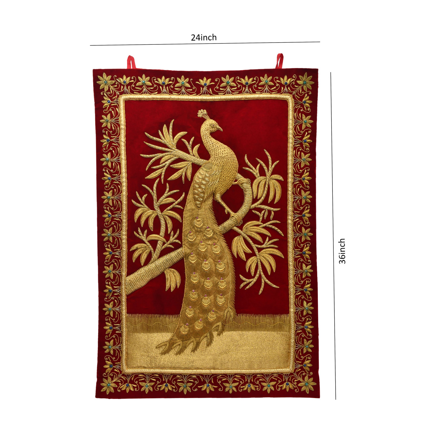 AargKraft™ Royal Ancient Zardozi Jewel Art Wall Hanging, Hand Embroided - Peacock Red Velvet, Zardosi Wall hanging 24 x 36 inch
