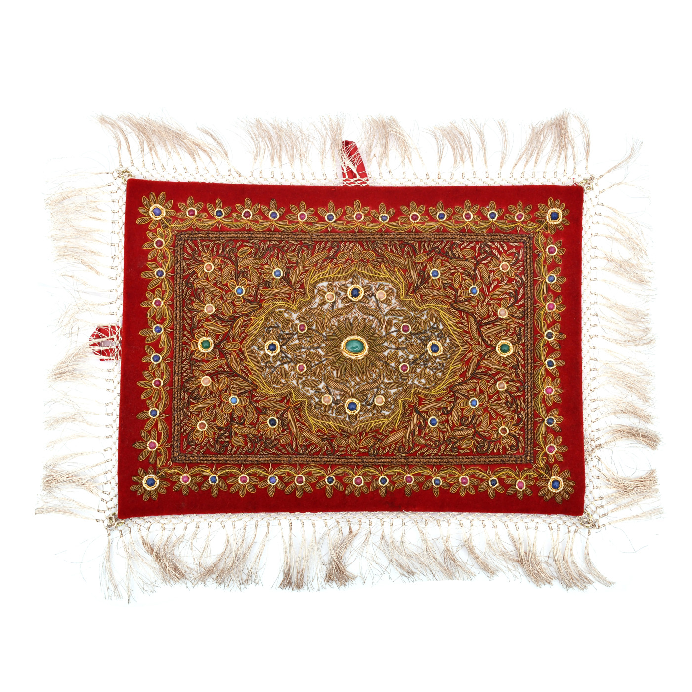 AARGKRAFT Royal Ancient Zardozi Jewel Art Wall Hanging, Hand Embroided - Red Velvet, Zardosi Wall hanging 9 x 12 inchs