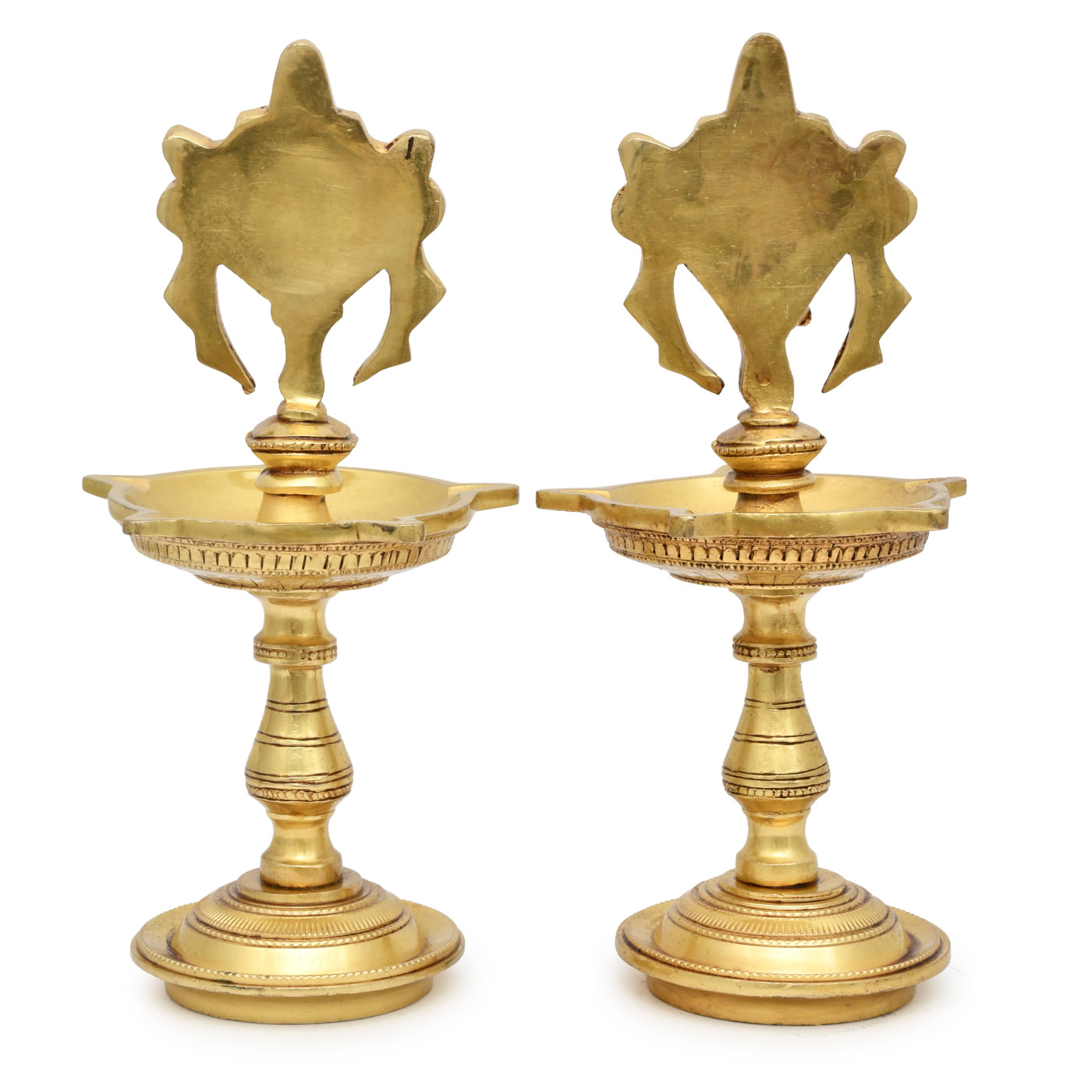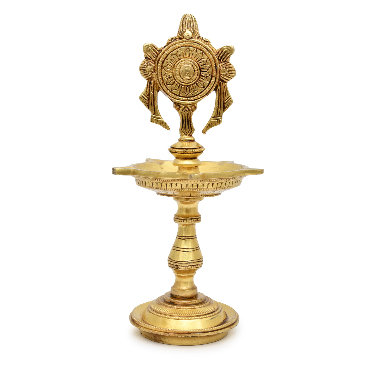 AargKraft™ Shankh Chakra Namah Design Brass Diya Oil Lamp Deepam Deepak Kuthu Vilakku Shankha Gada Padma for Pooja Home & Office Height - 9 Inches