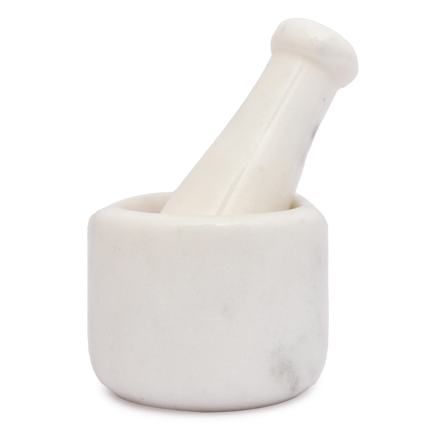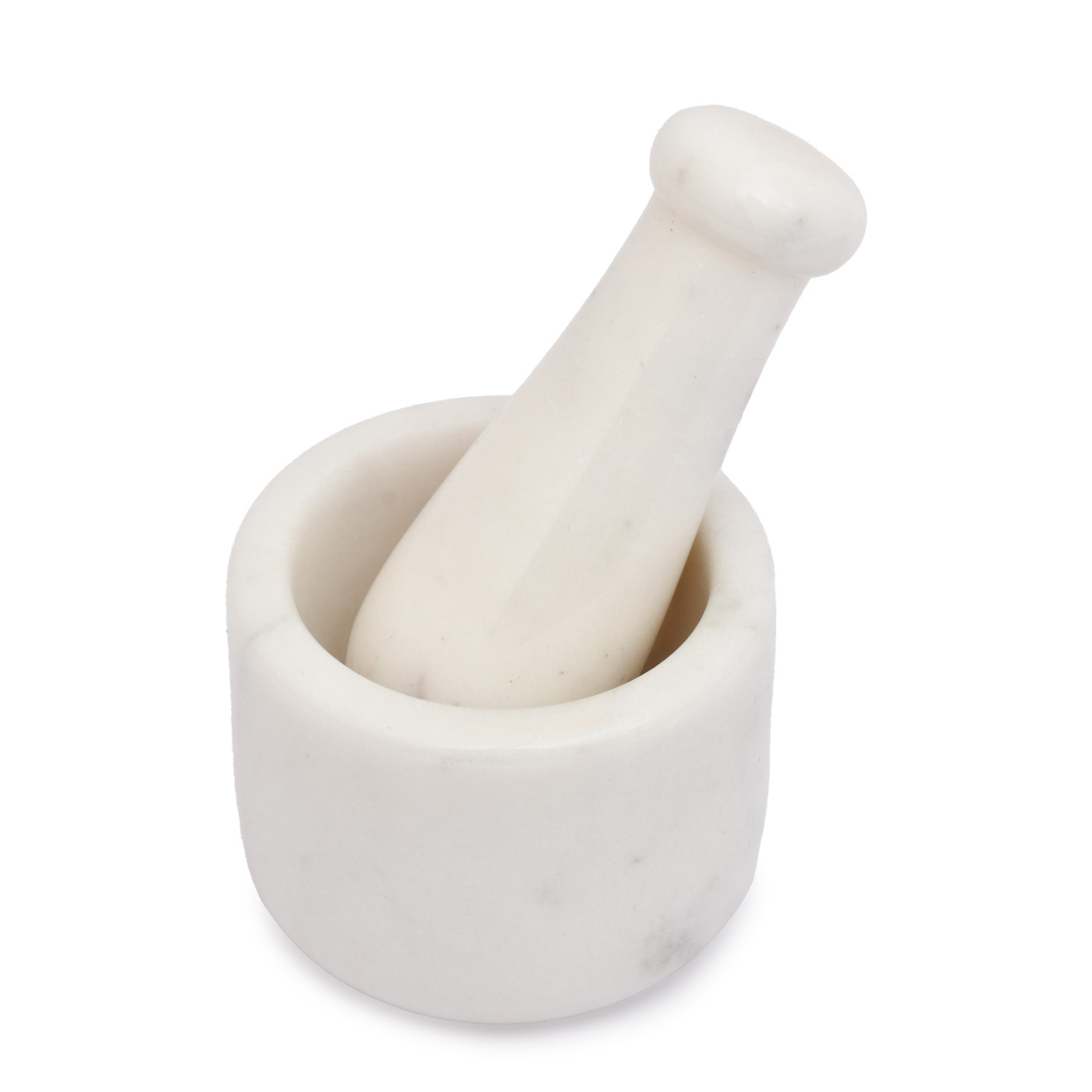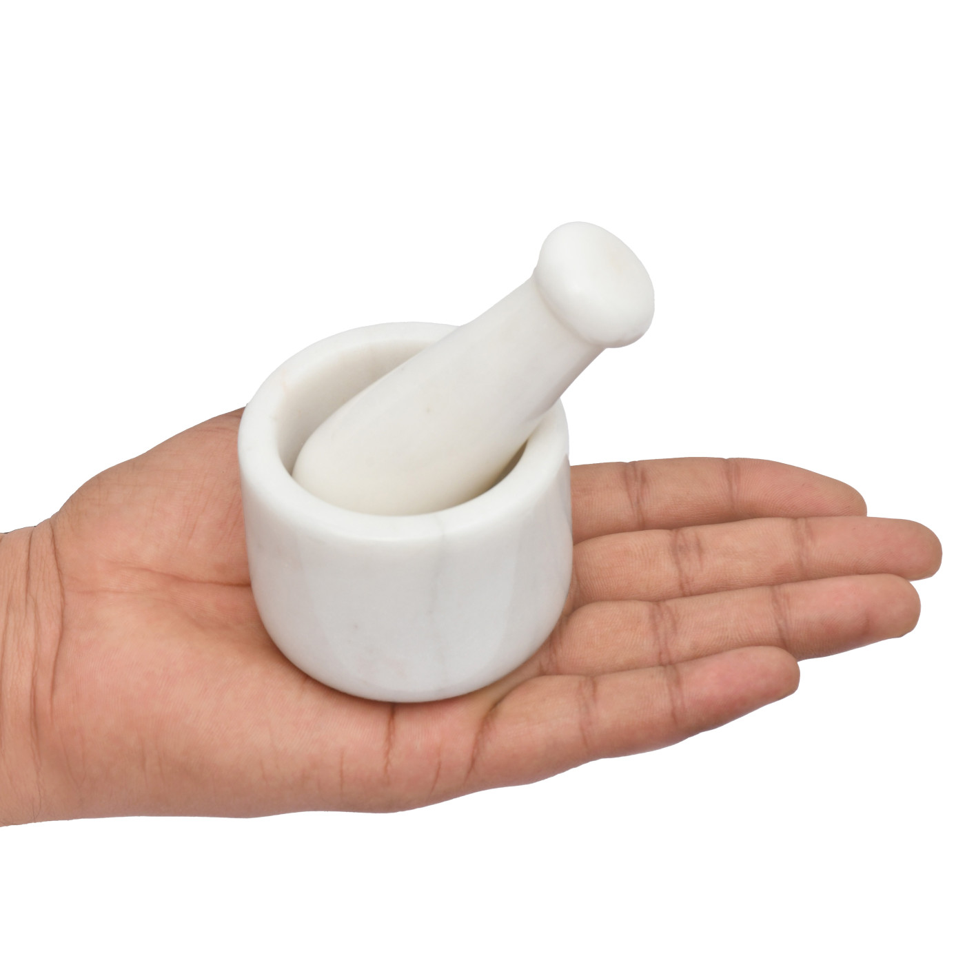 AargKraft White Marble Natural Stone Mortar And Pestle Set/Spice, Medicine Grinder Masher Kharad, Khallad, Okhli And Musal (Small) Size - 2.5" Diameter